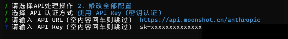 选择 “2、使用 API Key(密钥认证)” 。