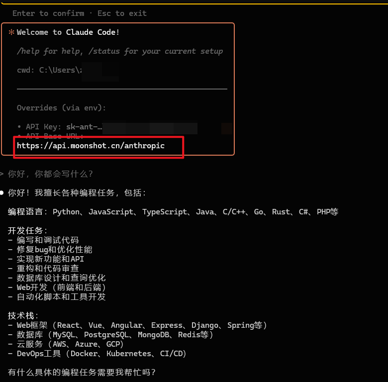 KIMI API 访问地址: https://api.moonshot.cn/anthropic