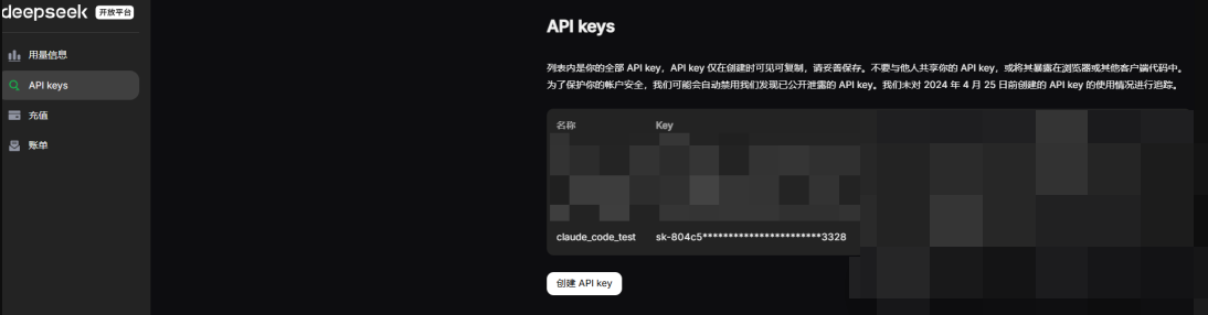 进入界面 https://platform.deepseek.com/api_keys 申请 API KEY。